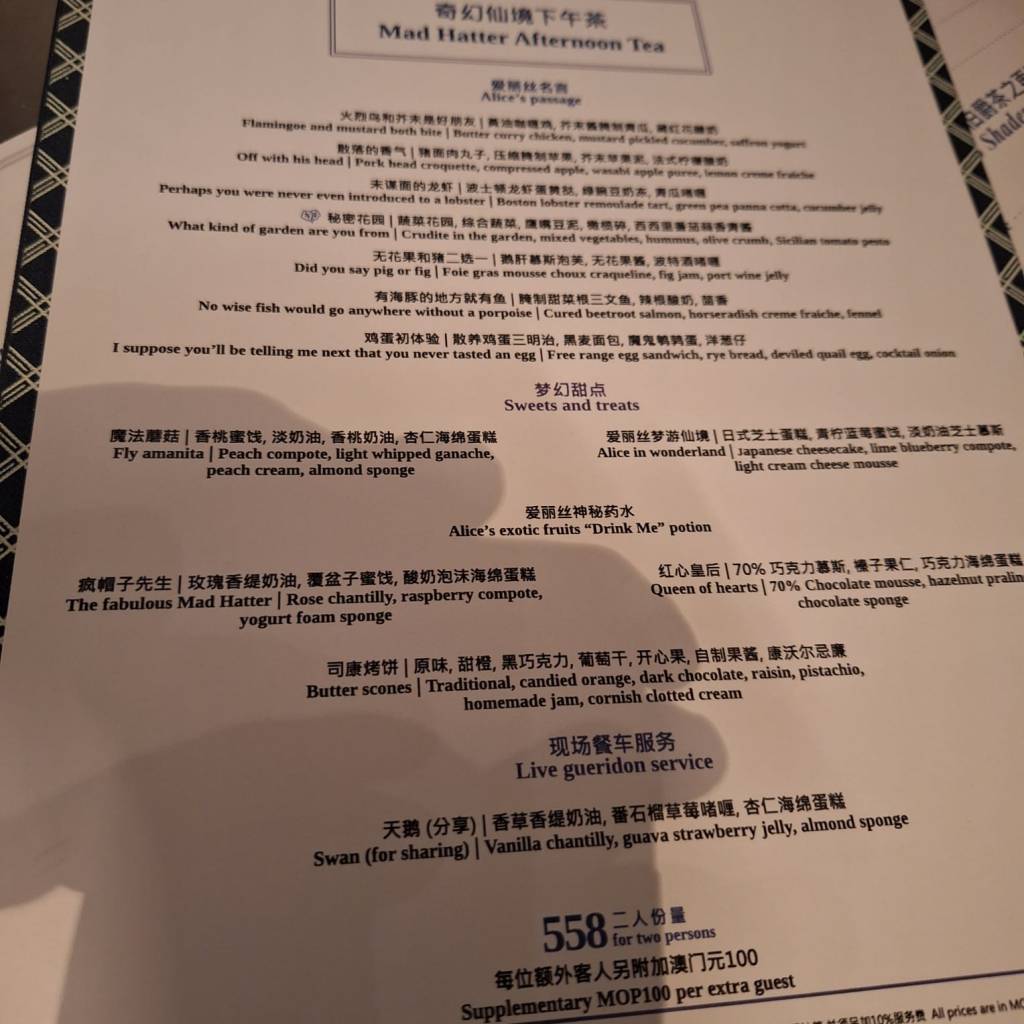 價錢參考: MOP 558 / 雙人(另收10%服務費),額外人數約MOP 100/位
